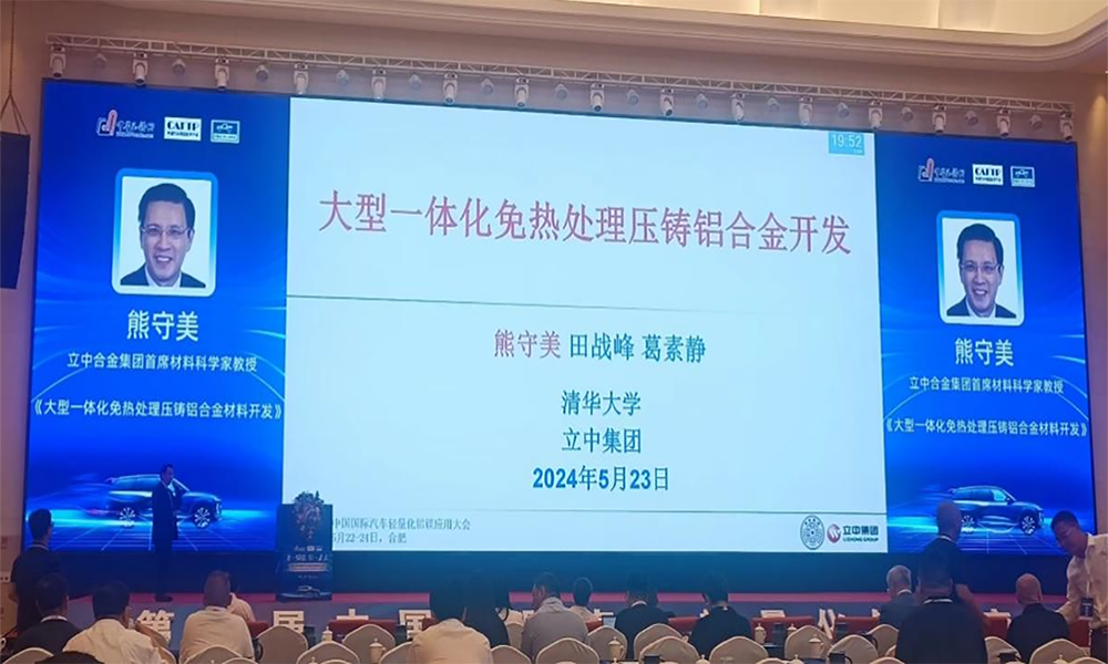 2024年5月22日至24日,第三屆中國國際汽車輕量化鋁鎂應(yīng)用大會在安徽合肥圓滿舉辦,立中集團(tuán)出席大會,并由立中集團(tuán)首席材料科學(xué)家、清華大學(xué)熊守美教授做了《大型一體化免熱處理壓鑄鋁合金的開發(fā)》的主題報告,報告中發(fā)布并詳細(xì)介紹了立中集團(tuán)與清華大學(xué)聯(lián)合研發(fā)的高強(qiáng)韌和高屈服兩款免熱處理鋁合金,以及立中集團(tuán)自主研發(fā)的低碳再生免熱處理鋁合金等。
