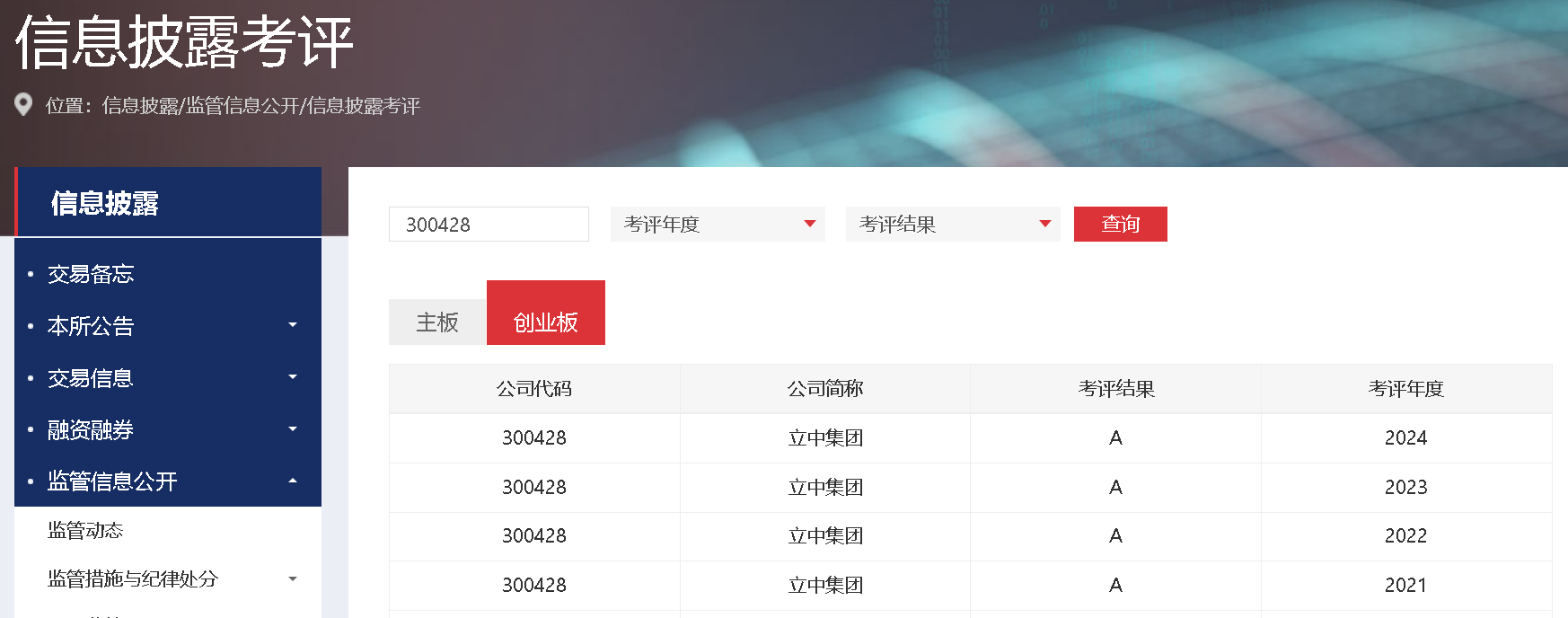 2025年10月31日,深圳證券交易所(以下簡稱“深交所”)發(fā)布《關(guān)于深市創(chuàng)業(yè)板上市公司2024-2025年度信息披露工作評價(jià)結(jié)果的通報(bào)》,立中四通輕合金集團(tuán)股份有限公司(以下簡稱“立中集團(tuán)”或“公司”)憑借高質(zhì)量的信息披露、規(guī)范的公司治理、深入的投資者交流以及持續(xù)穩(wěn)定的股東回報(bào),再次榮獲信息披露工作最高評級——A級。這是立中集團(tuán)已連續(xù)4年獲此榮譽(yù),充分體現(xiàn)了監(jiān)管機(jī)構(gòu)與資本市場對公司在公司治理、規(guī)范運(yùn)作及投資者關(guān)系管理等方面工作的高度認(rèn)可。